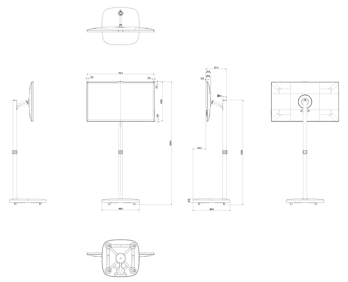 | Dimension with Stand(W*H*D) | 731.5*1334.3*406(mm) |